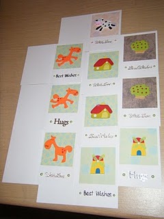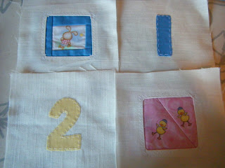 I handstitched the numbers on so they will fray and I pieced the pictures into the apertures on Sunday. I think this is a messy version of a standard quilting technique, but I just made it up as I went along. I loved piecing these just as I loved making the patchwork cushion. I really do have to get started on quilt making!