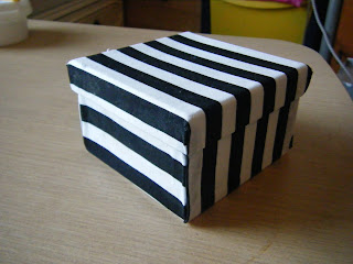 I also made my dad a fabric covered notice board from a piece of black and white stripy fabric, a cork board and a couple of layers of wadding, plus hundreds of staples and a bit of PVA glue. He’s a big Notts County fan. Overseas readers never heard of Notts County ? Oh, hang on, I bet you British readers have never heard of them either! They’re a football team. Certainly not Premiership material, I don’t know what division they are in now as they keep changing the system but it used to be division 4, basically a bit up from the Sunday pub team matches!! Anyway, they play in black and white stripes, hence the black and white theme of his presents.