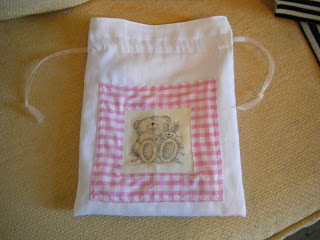I finally got round to doing something with the Forever Friends bear I stitched, I made it into a drawstring bag. It didn't go as well as last time as it has a bit of an unintended pleat in the back. I didn't photograph it for you as I was already feeling pretty rubbish about my lack of sewing skills by this point!