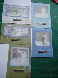 And everyone else will be receiving a super-simple The Snowman card. I'm usually quite glitzy with my cards and add loads of embellishments, but I had so little time this year that I thought I'd try simple. I'm quite pleased with them. The metal greeting adds a special touch. Here is a shot of some of them.