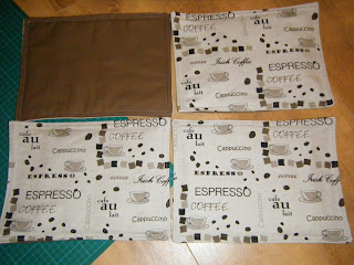 I showed you some coaster I was making for my brother for Christmas a while ago, and in the last post I showed you the tea towels I'd made, well now I've finished up the placemats (I'm guessing you've realised it's all a matching set!), there's just coffee cosies to go and I'll show you them all together. I'm quite pleased with these.
