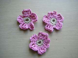 So, without further ado. On Thursday night I "mastered" the crocheted flowers - well they kind of look like flowers so that will do for me! I used Rowan HandKnit Cotton in the end and they seemed to hold their shape better. What do you think?