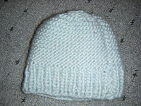 Then I knitted a hat.  My first disaster.  I wanted the hat to match the scarf.  The scarf had been knitted in a big chunky wool and the hat pattern called for DK.  I thought I could get round that by not using as many stitches as it said to use in the pattern, the result?  A new hat for my nearly-2 year old goddaughter, Rebecca!