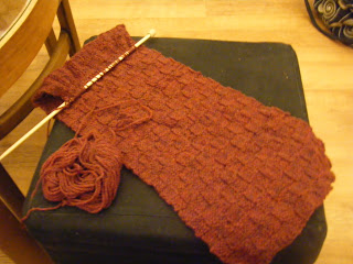 I didn't actually do much at the weekend but I did get some more of the basket weave scarf knitted: