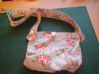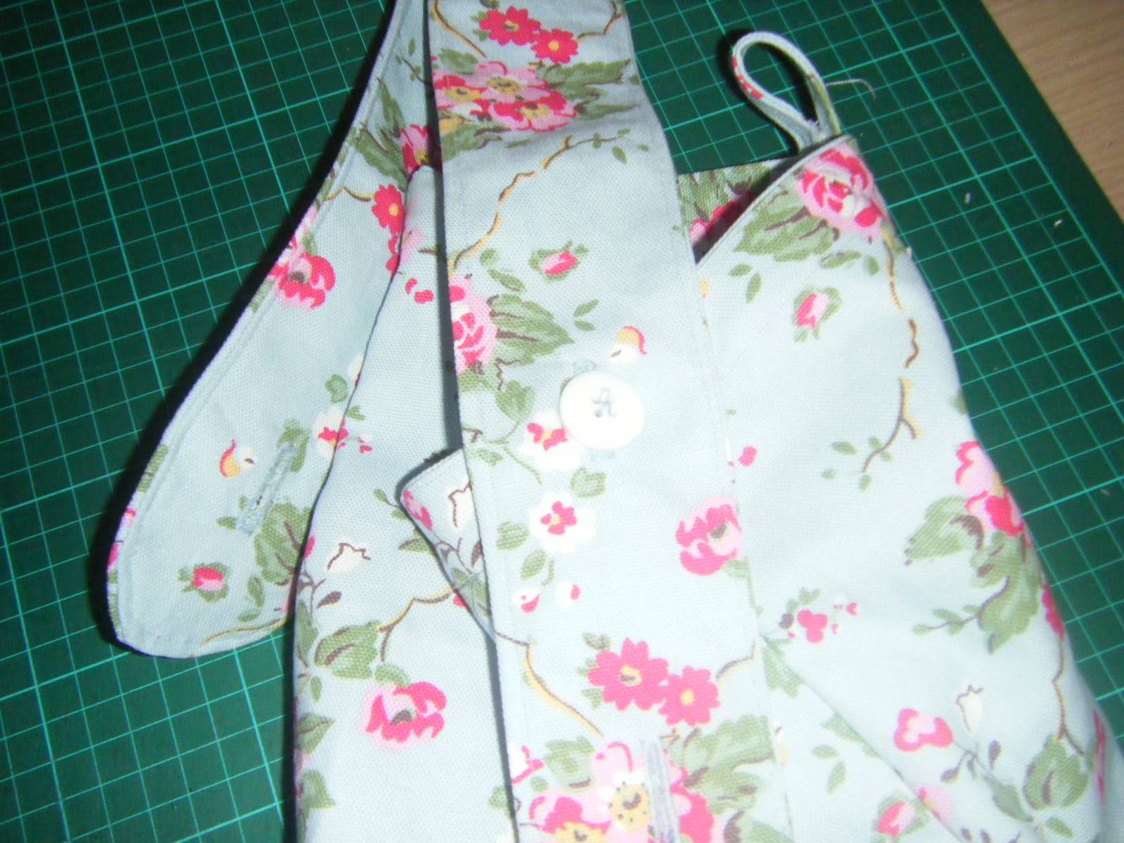 Hum, also somewhat wonky! I'd used a layer of batting/wadding inside to make it thicker, but I had to iron it as the fabric was all creased after I'd finished poking and prodding it, and it flattened the wadding completely! In the end I chose interfacing and got it right... not perfect by any means, but OK for a first third attempt.