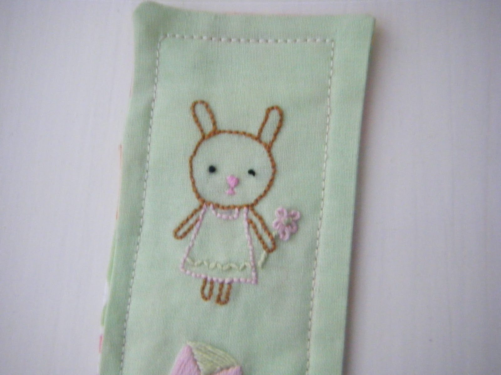 And finally in today's little show and tell, I started embroidering bookmarks last night. I'm going to make a couple for each reader in my life (shockingly few people!), with a personalised embroidery on the front and back it with a lovely piece of Moda fabric from the layer cakes I splashed out on and have done nothing with but sat and admired them ever since!